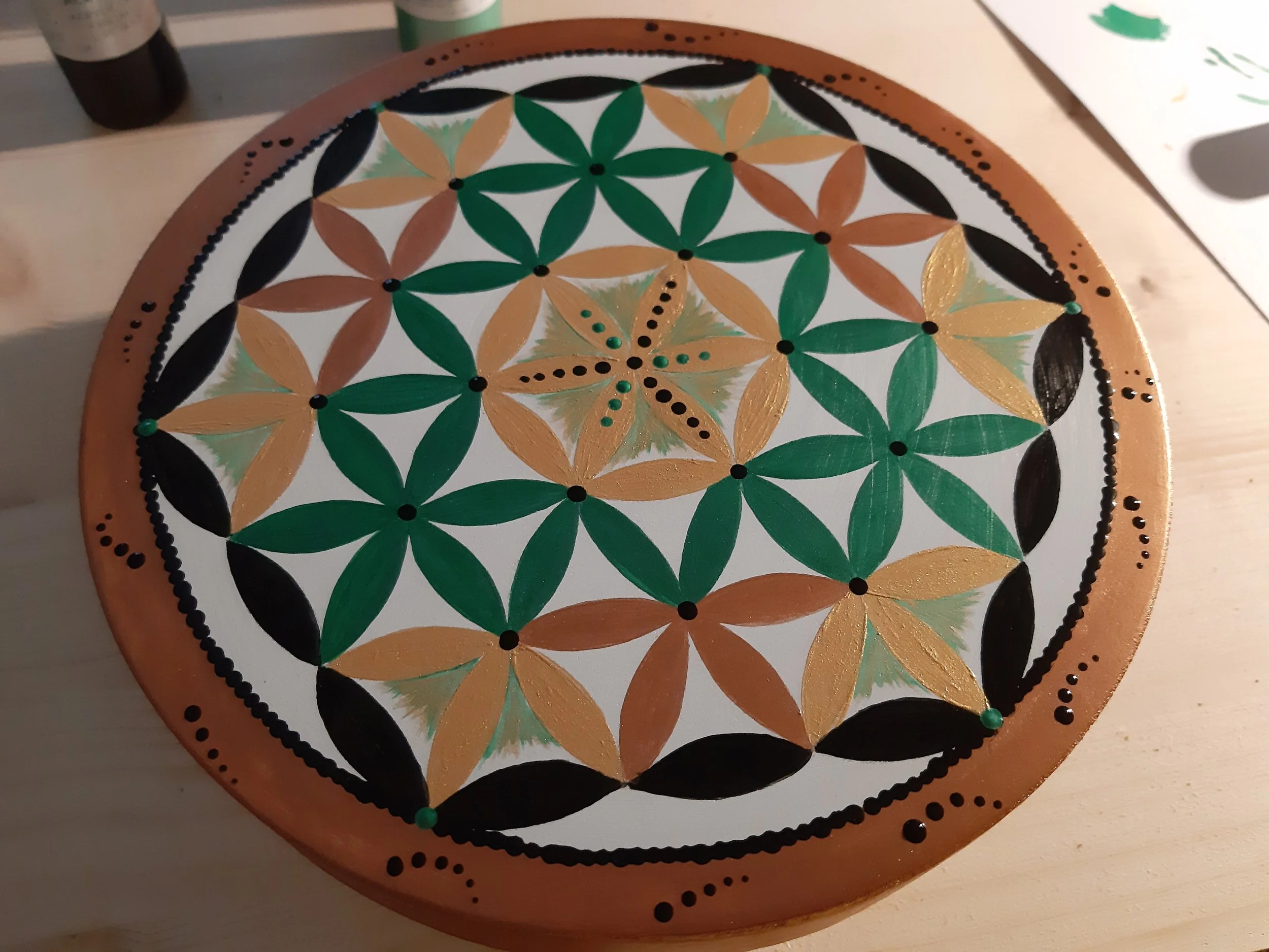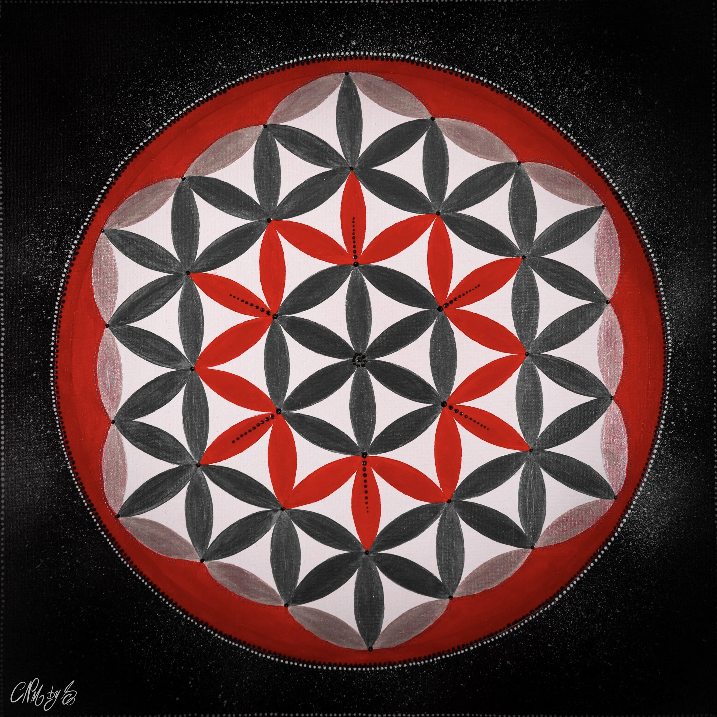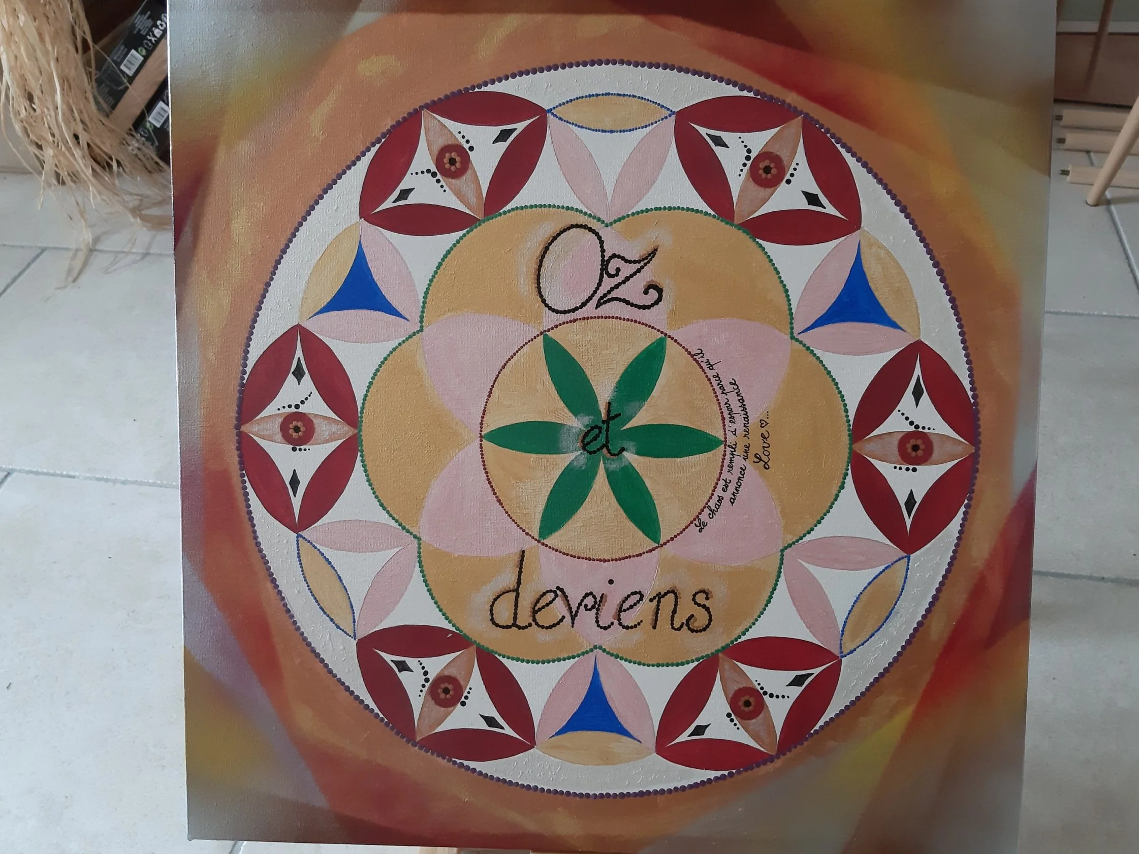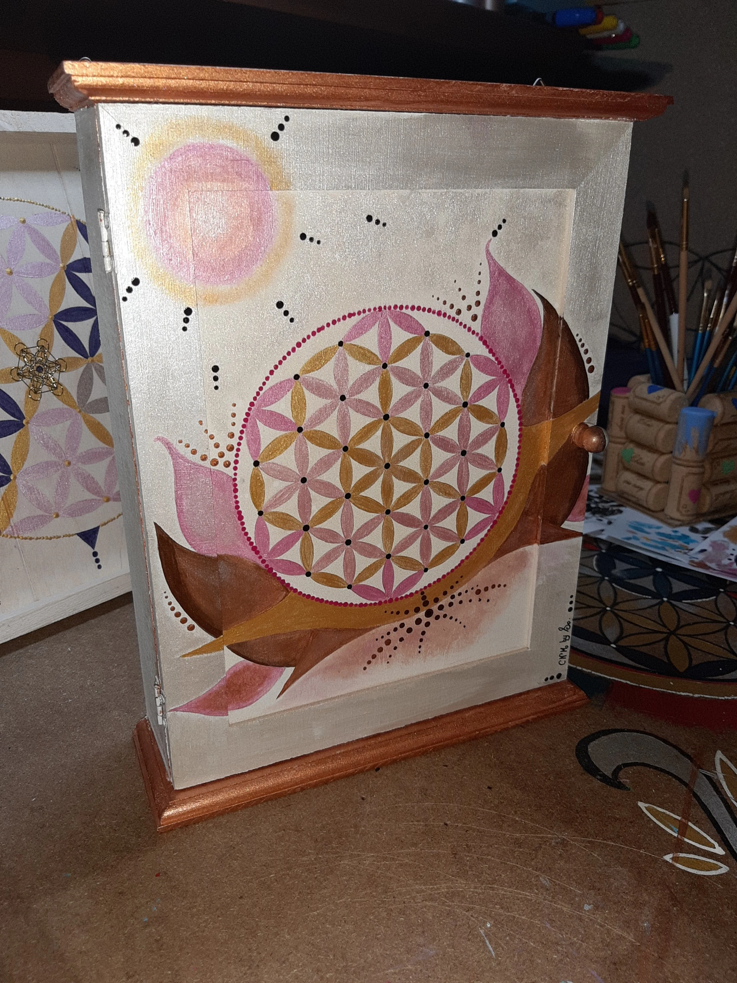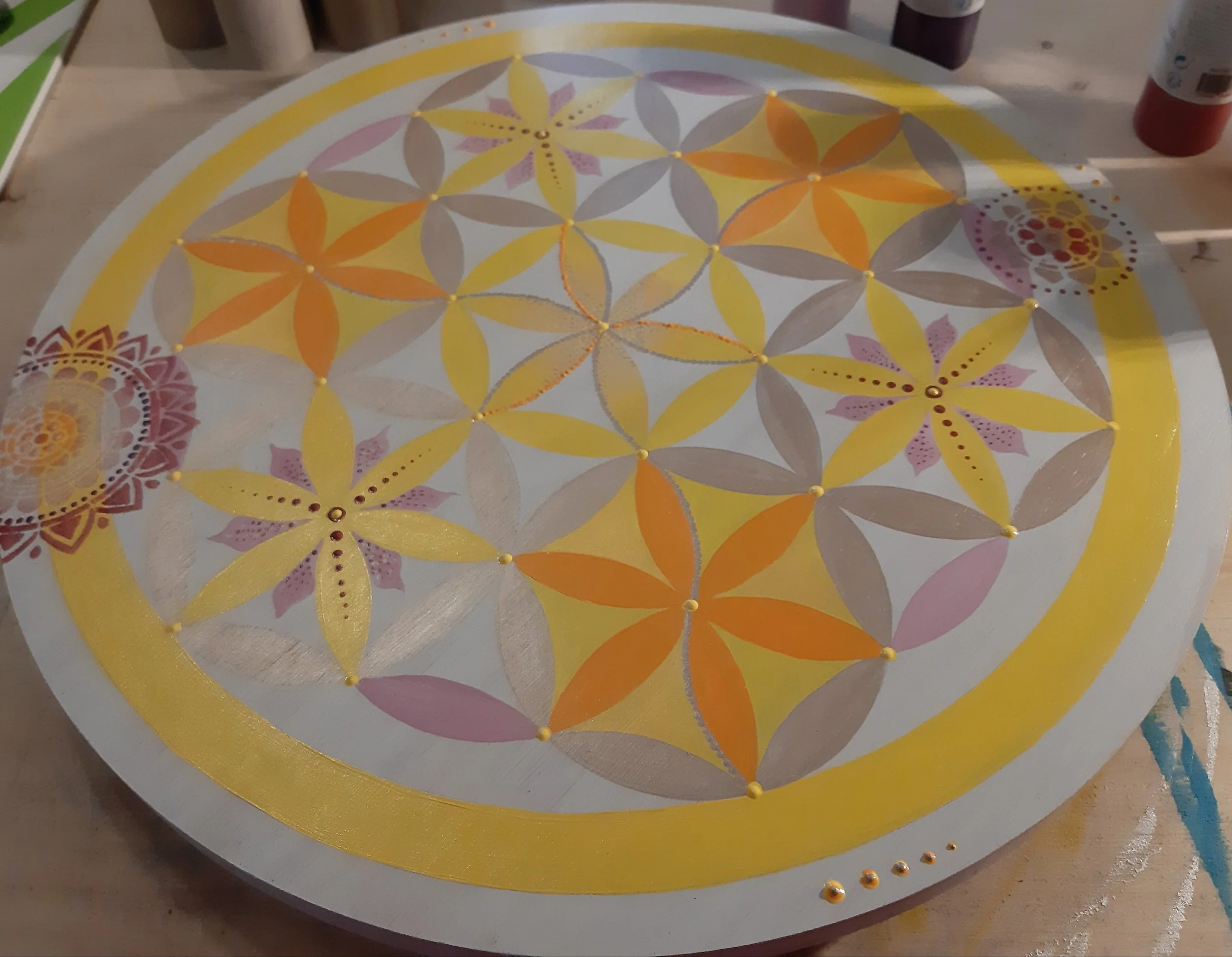 La fleur de vie est une forme géométrique sacrée dont le taux vibratoire est toujours élevé. Elle ne nécessite pas de nettoyage. Son énergie agit sur le lieu et les personnes en favorisant, protection, harmonisation et purification. La Fleur de vie personnalisée sera réalisée en canalisation et intègrera les couleurs et les informations nécessaires à l’évolution du foyer. Elle peut être réalisée sur un meuble, un tableau ou au directement sur un mur.